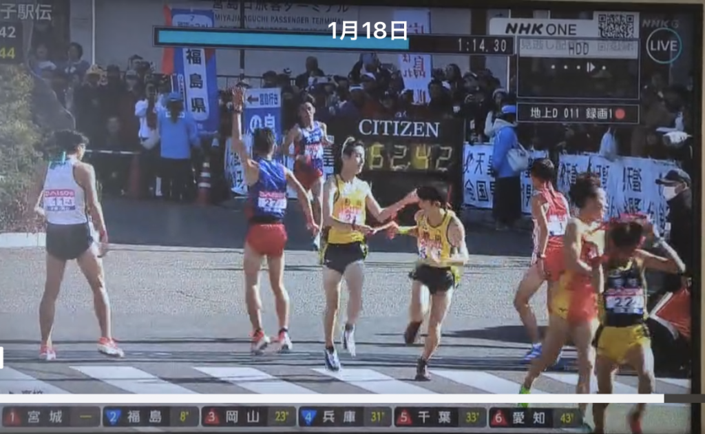 内海くんは、3区の野中選手(國學院大学)から8位でタスキを受け、5位争いの集団で5キロの道を走りぬき、6区の竹下選手(浜松日体大高)につなげました。静岡県はアンカー7区の西澤選手(トヨタ紡績)が区間2位の走りで、9位に。入賞はのがしましたが、歴代2位の快挙に、内海くんも貢献することができました。全国の舞台に立った経験を胸に、これからもがんばってください。